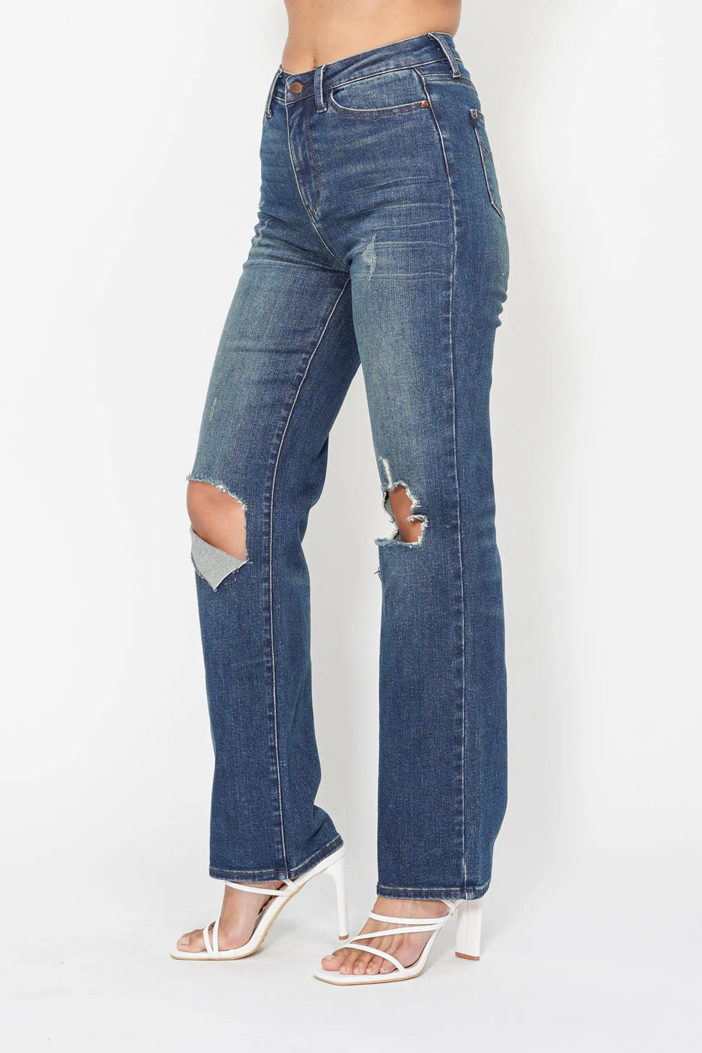 Judy Blue Full Size Hw Ripped Knee Dad Jeans Plus Size