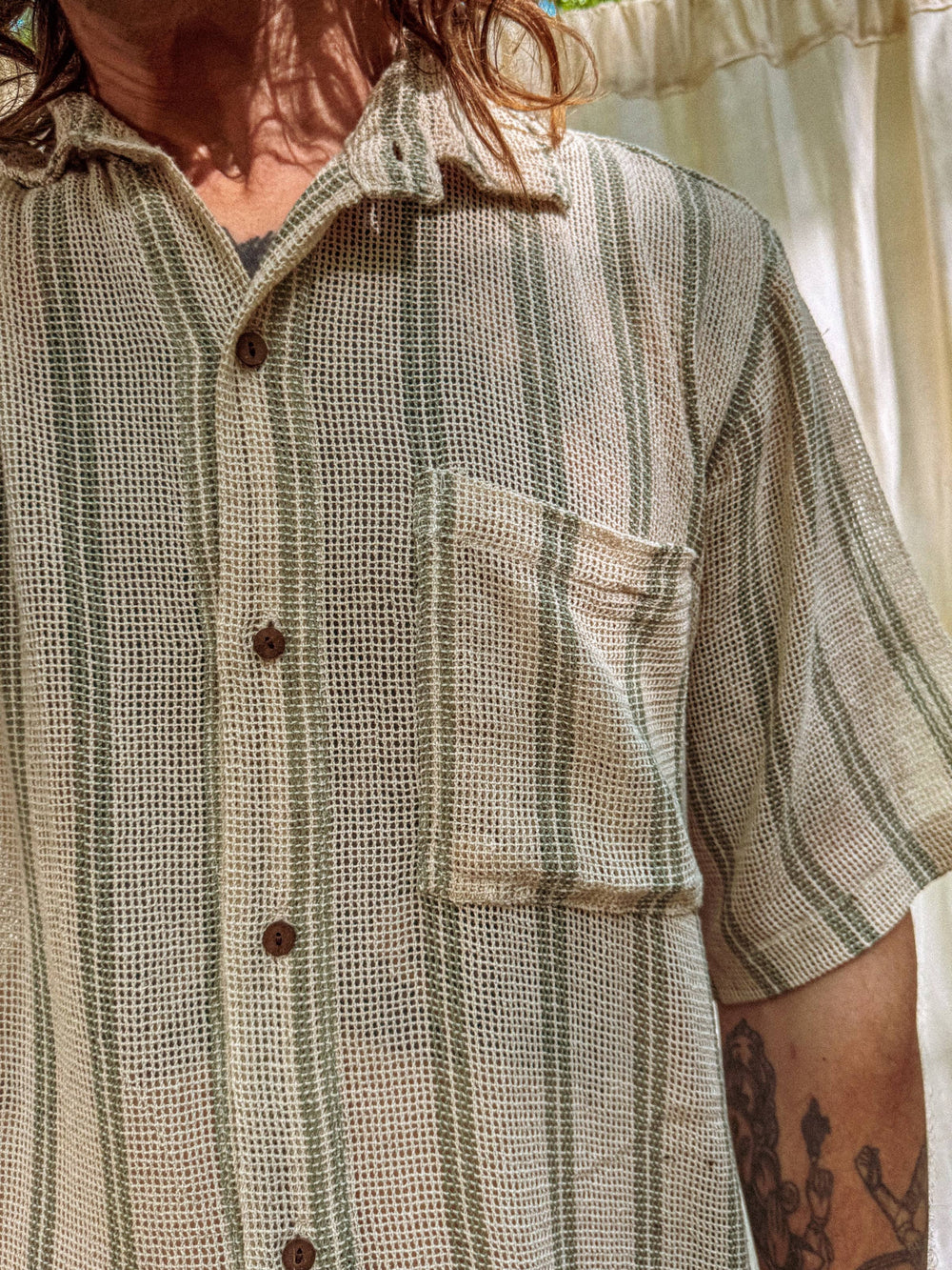 Men's Surfer Mesh Boho Cotton Button Up Tee Boho Men's Shirt