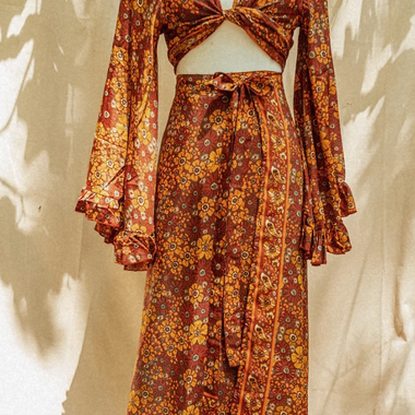 Hippie Boho Style 2 Layer Floral Silk Wrap Skirt