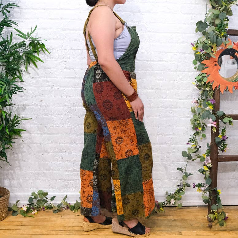 Patchwork Vibrant Wide Leg Cotton Jumpsuit: Celestial / One Size