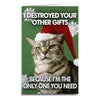 Your Christmas gifts are scratching pads and litter boxes meow. Don't bore your loved ones and co-workers with some store-bought mass-produced lameness. These cards are professionally printed on high quality luster greeting card stock and are sure to be the most unique card on the mantel. Each card measures 5x7 inches and are blank inside so that you can truly personalize your message. Every card comes with a matching envelope.
