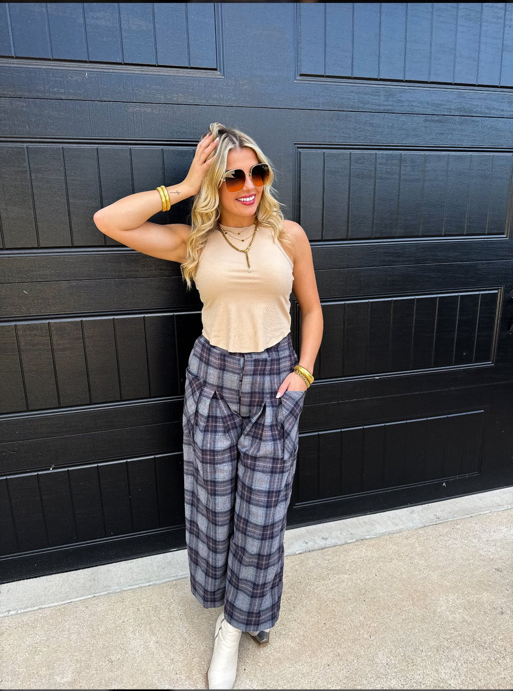 Cue the compliments — the Cayla Crop Plaid Pants are that girl of your closet ✨ With a high rise fit, wide flowy legs, and vintage-inspired plaid in either navy or green, these cropped palazzo beauties bring both comfort and charm.