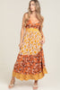 V-Neck Twist Front Cut-Out Patchwork Maxi Dress