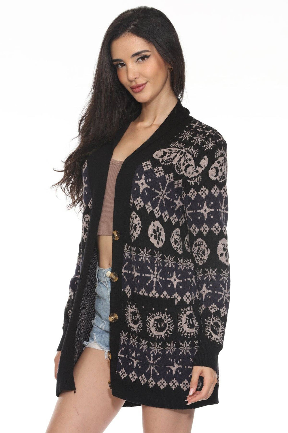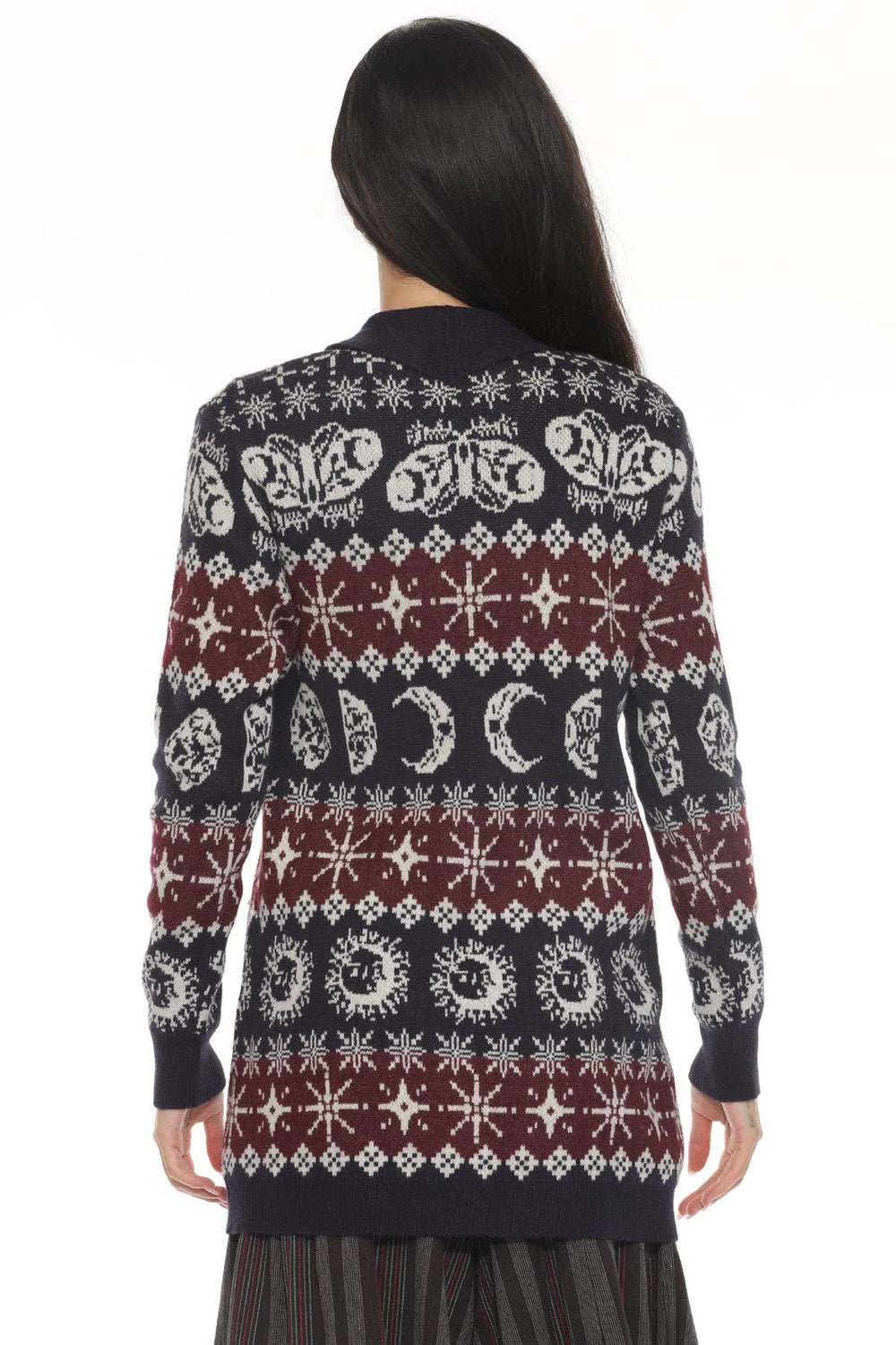 Wrap yourself in the warm, cuddly charm of the Fair Isle Celestial Cardigan. Its soft, cozy fabric invites endless snuggles, while the whimsical celestial patterns add a playful touch to your everyday look. Perfect for chilly days when you want to feel comfy and cute all at once!