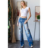 MULTICOLOR FLOWER EMBROIDERED WASHED DENIM JEANS - IMPORTED - MINERAL WASH DETAIL - RELAXED FIT - TRUE TO SIZE - MID RISE - OUR MODEL IS ALWAYS WEARING SIZE "S" - FABRIC CONTENT: 70% COTTON 28% POLYESTER 2% SPANDEX