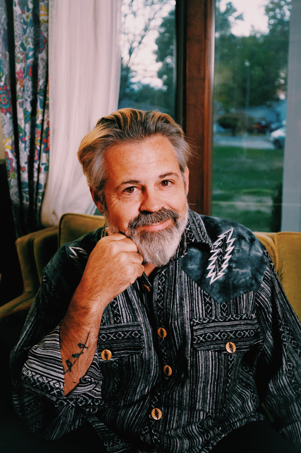 The earthy solid body keeps things grounded while the shoulder prints pay tribute to the Dead’s psychedelic roots — a nod to free spirits, road trips, and good vibes only.