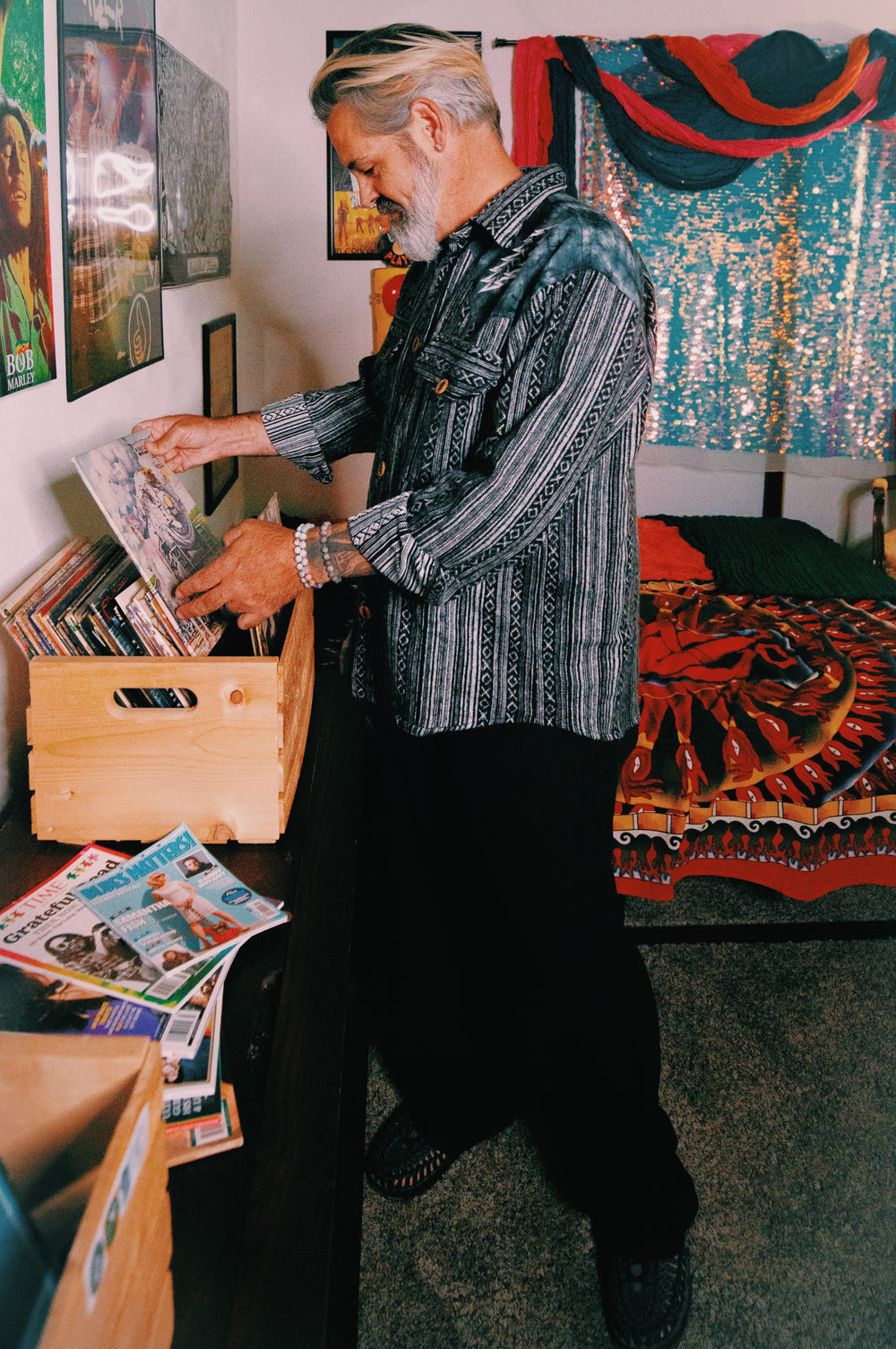 Layer it open over a vintage band tee, or button it up with dark denim for a look that says old soul, new groove.
