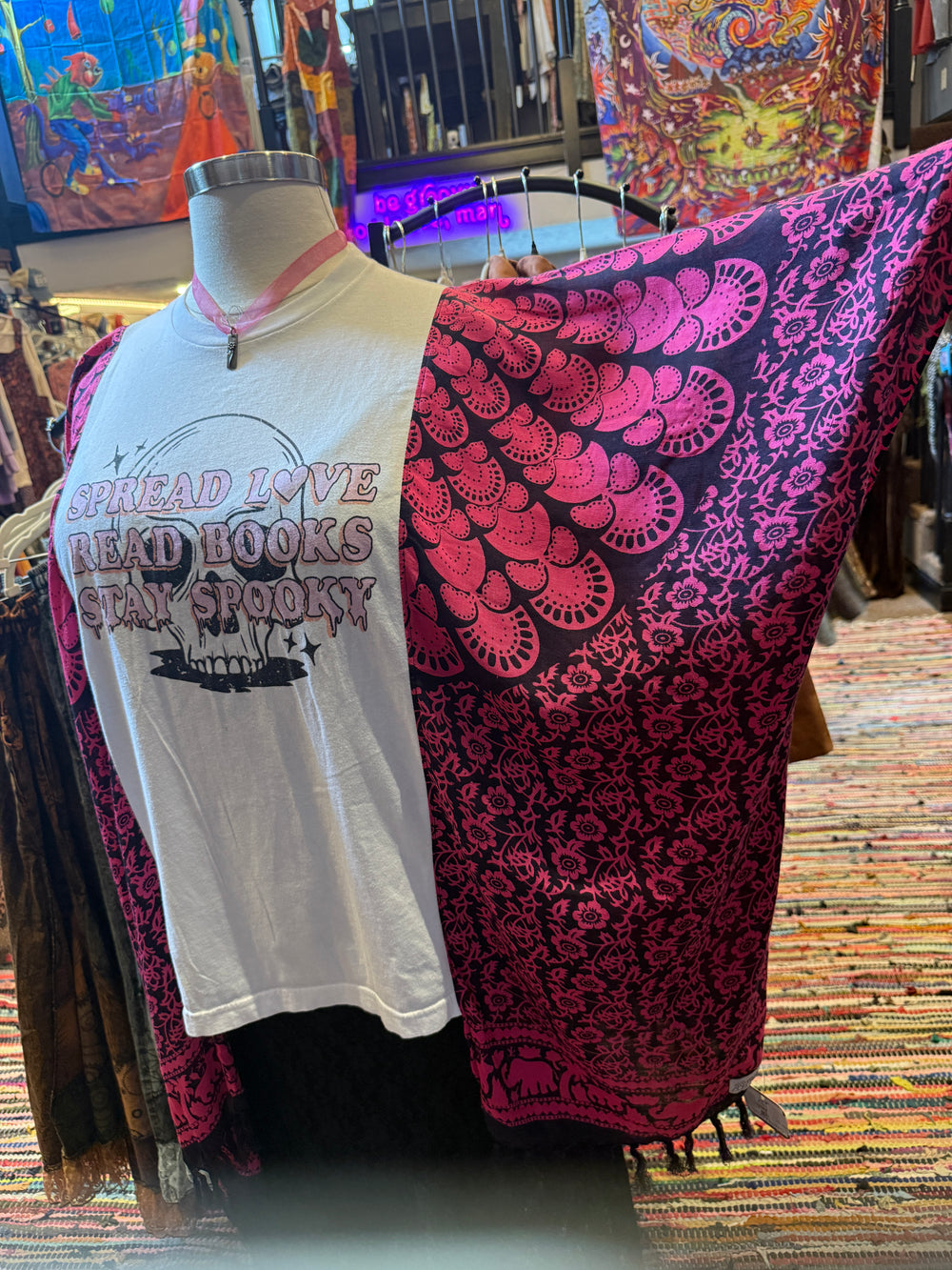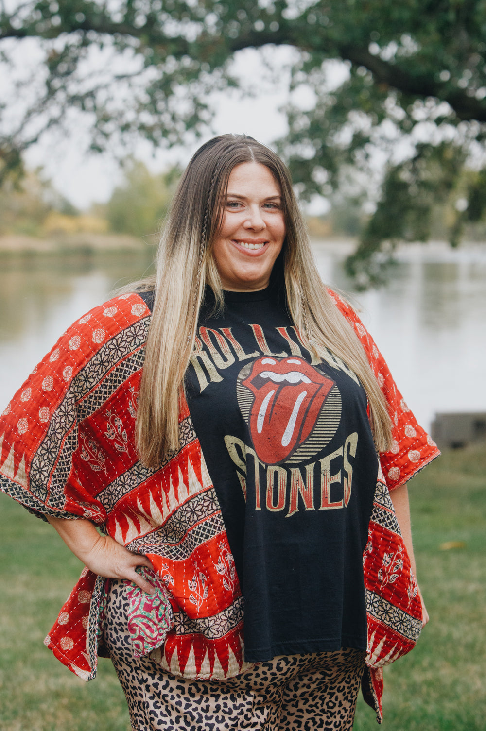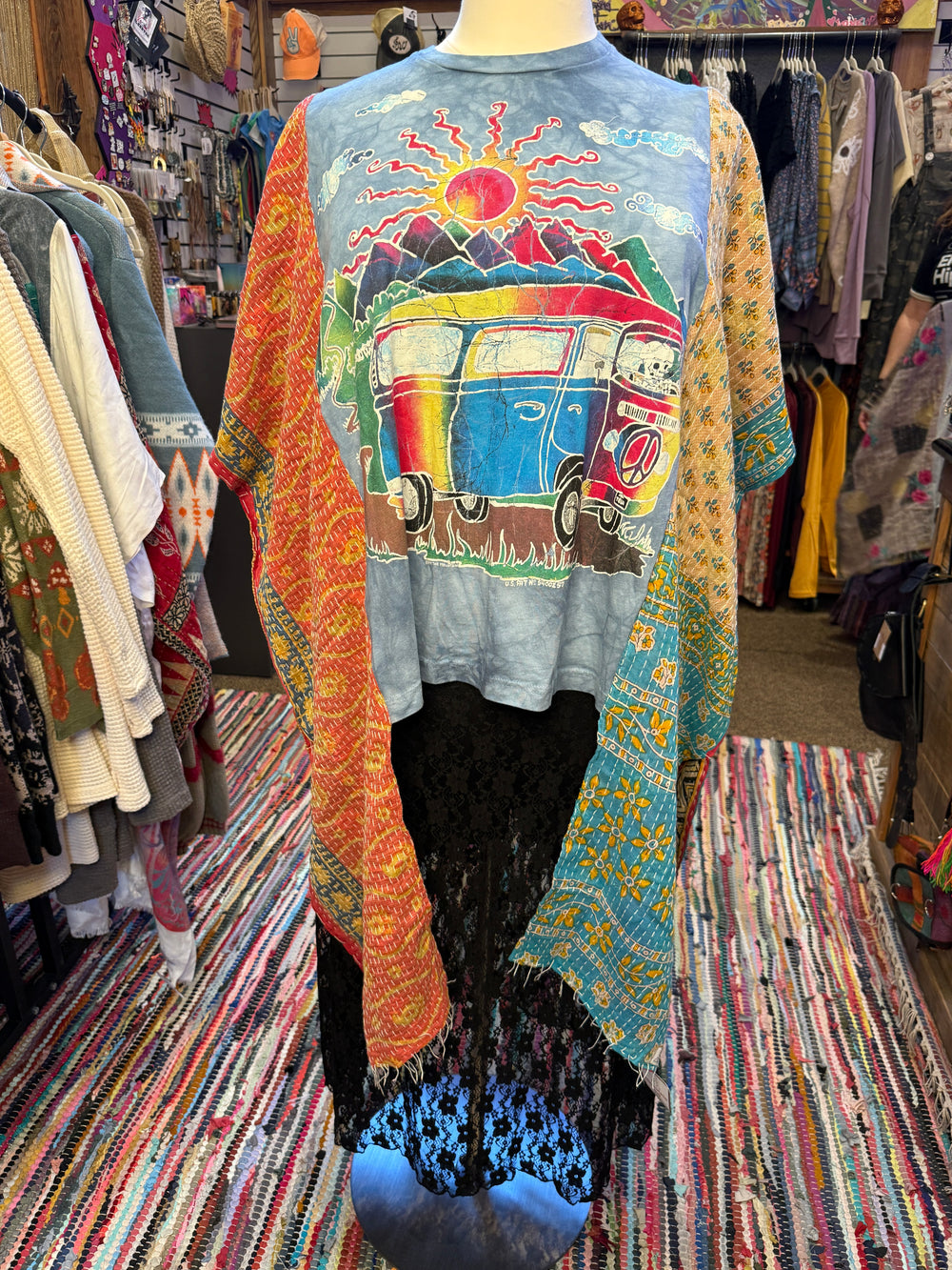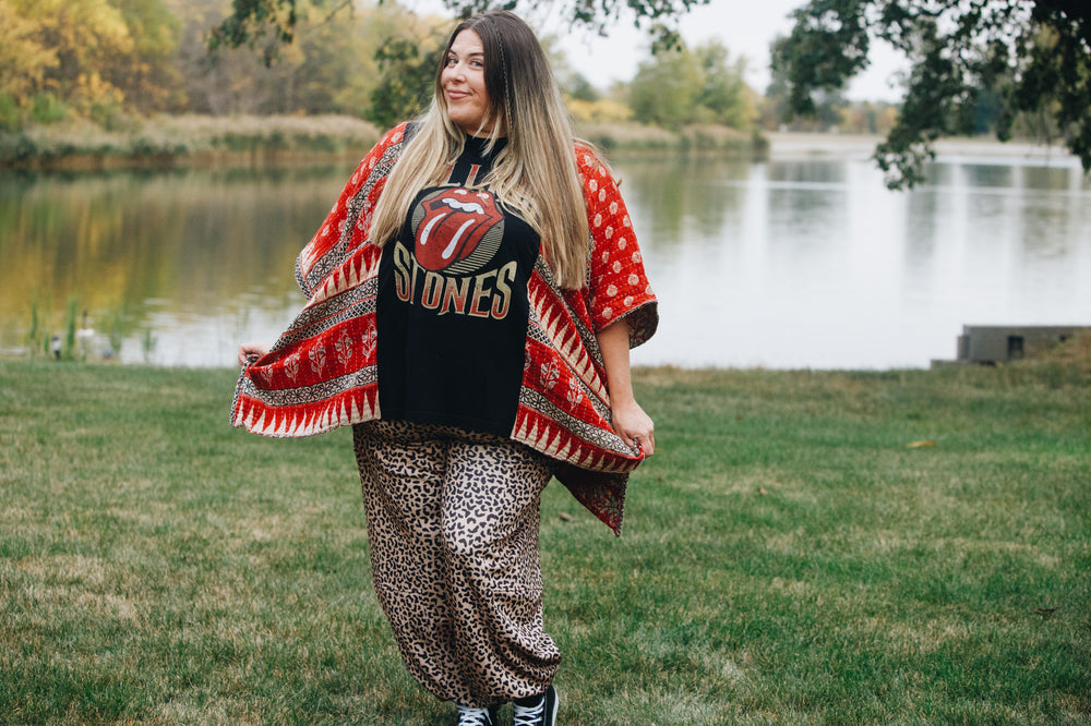 Each poncho top is one-of-a-kind — crafted from recycled fabrics like soft cottons, breezy rayons, and dreamy blends. Expect a beautiful surprise with every piece — florals, geometrics, tie-dyes, and everything in between! 🌼💫